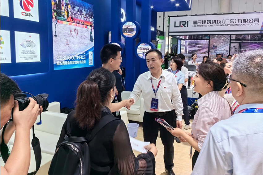 展會(huì)期間由中國木材保護(hù)工業(yè)協(xié)會(huì)運(yùn)動(dòng)地板專委會(huì)主辦的首屆全國運(yùn)動(dòng)場館設(shè)計(jì)大賽啟動(dòng)儀式在金陵體育展位舉行,金陵體育總經(jīng)理李劍剛出席并致詞。